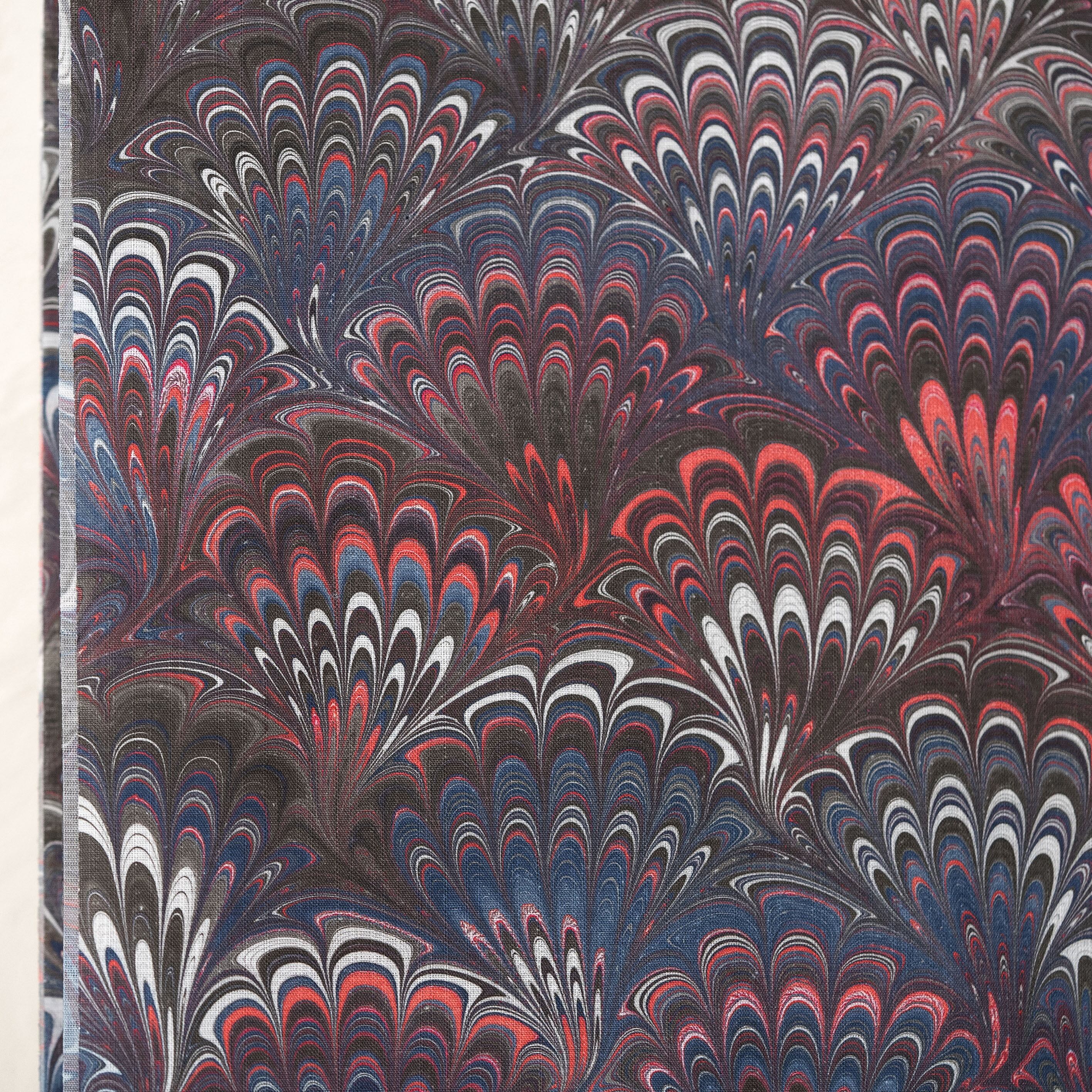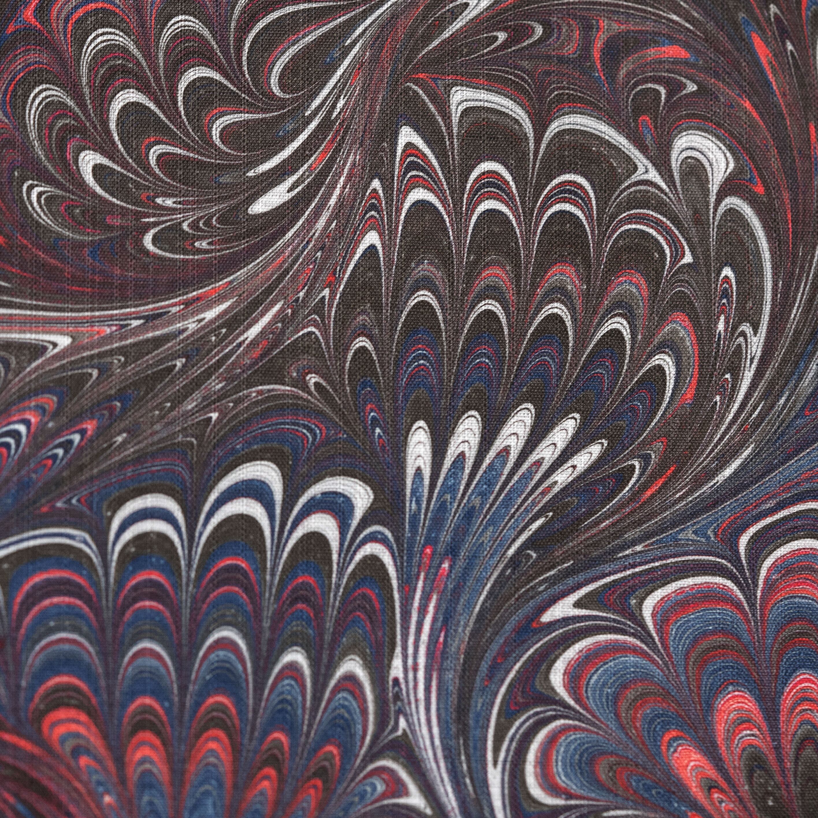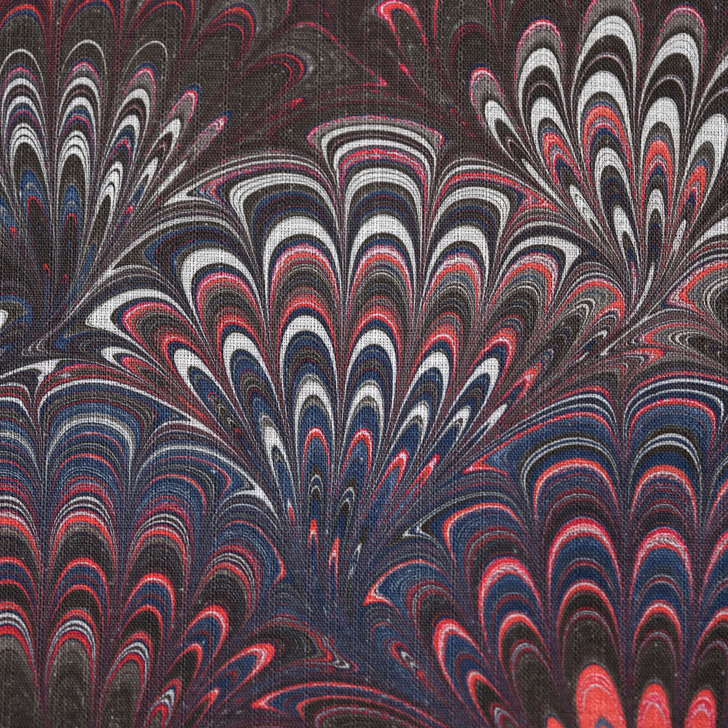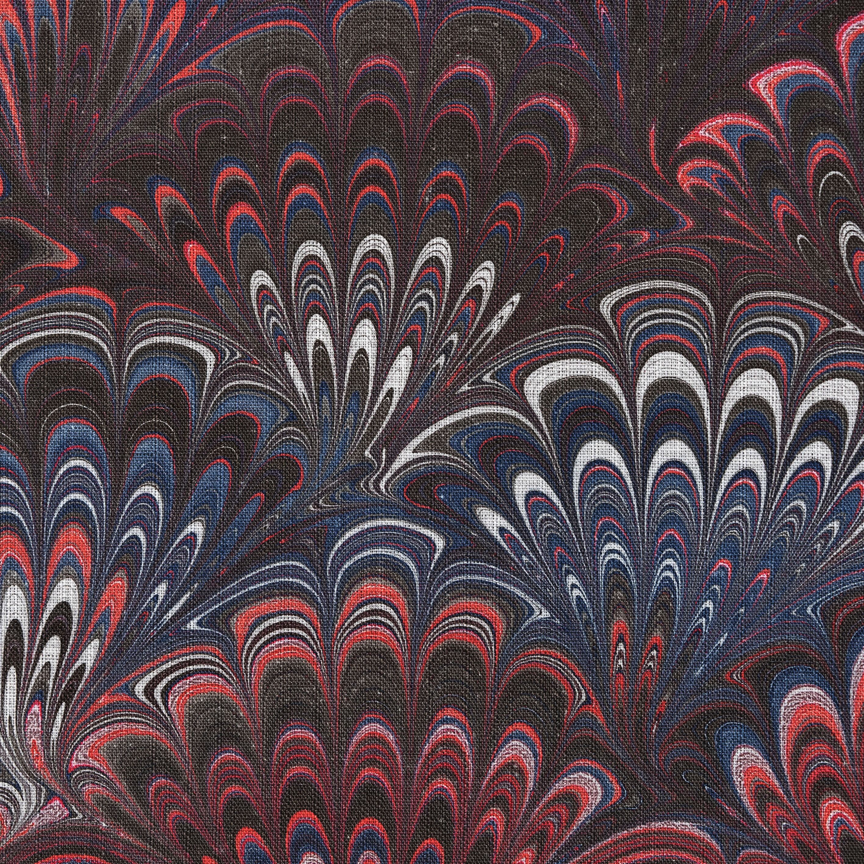 夜空に咲く大輪の花火が、鮮やかな色彩で描かれた墨流し作品