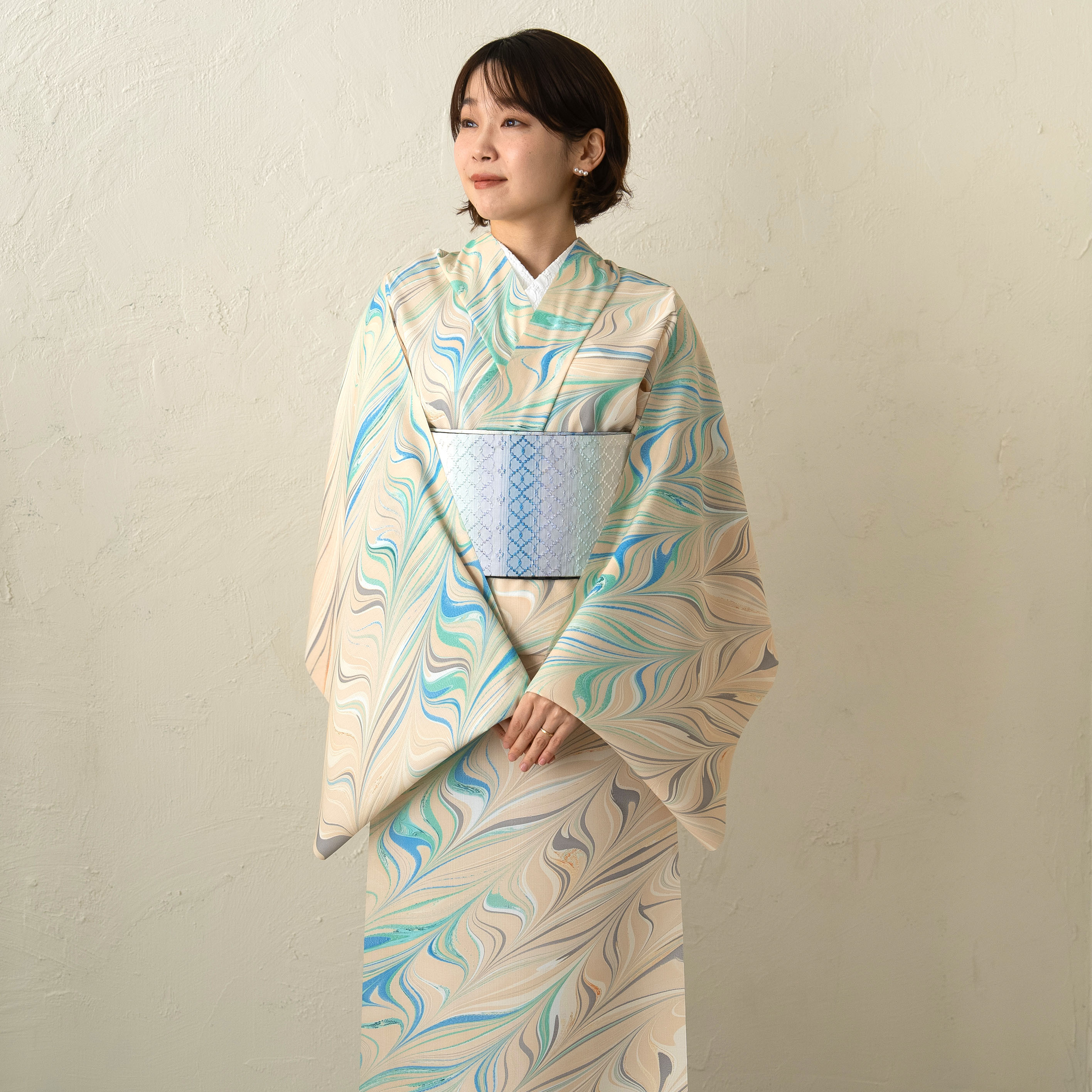 ・【恭平墨流し】は繊細で美しい柄の品質を保つため、一反を3回に分け時間をかけて染めます。反物でご納品する場合3分割にカットされて納品致します。(仕立て上問題はございません)ご理解ご協力のほどお願い致します。(今回の反物は作品によっては、カットされていないものを含みます)