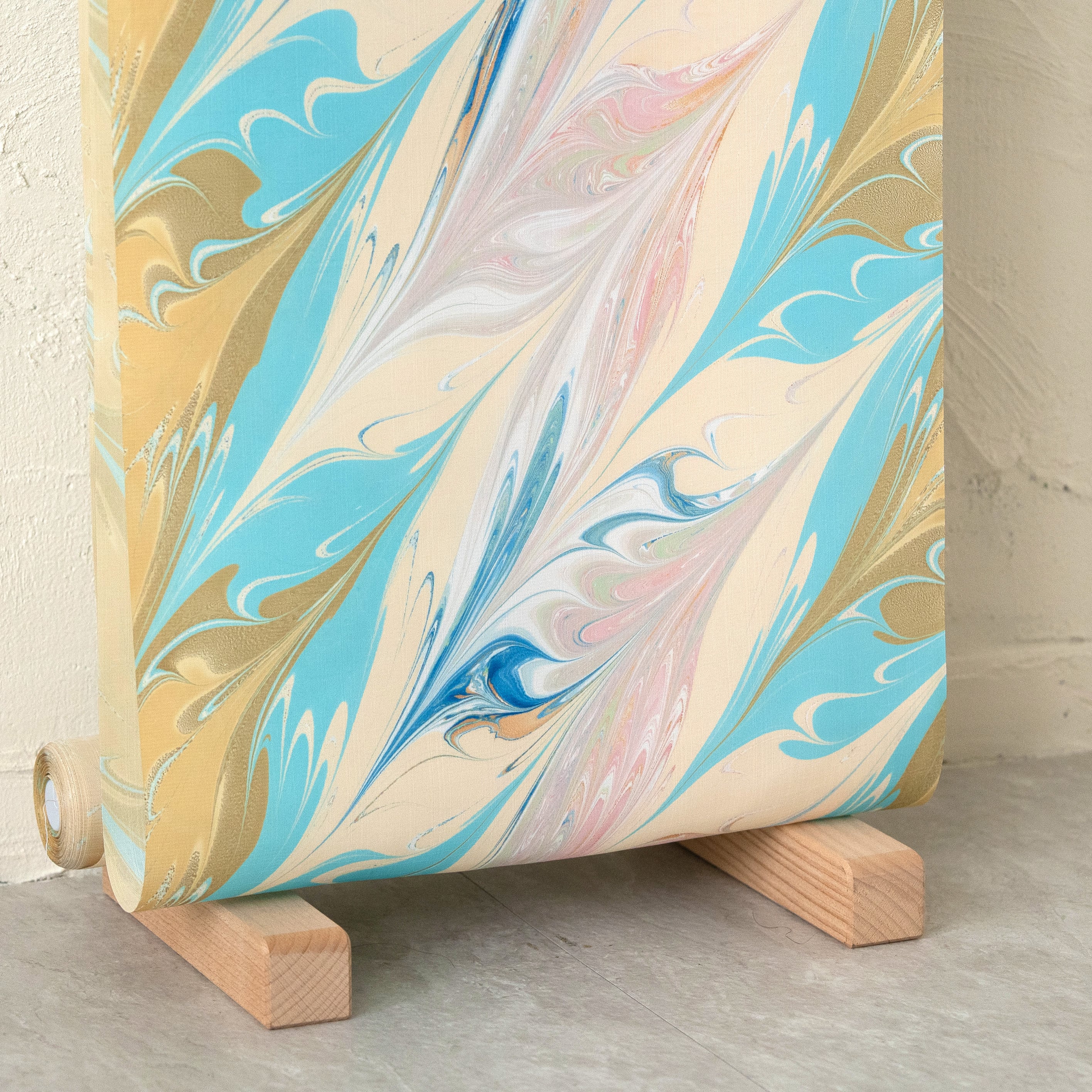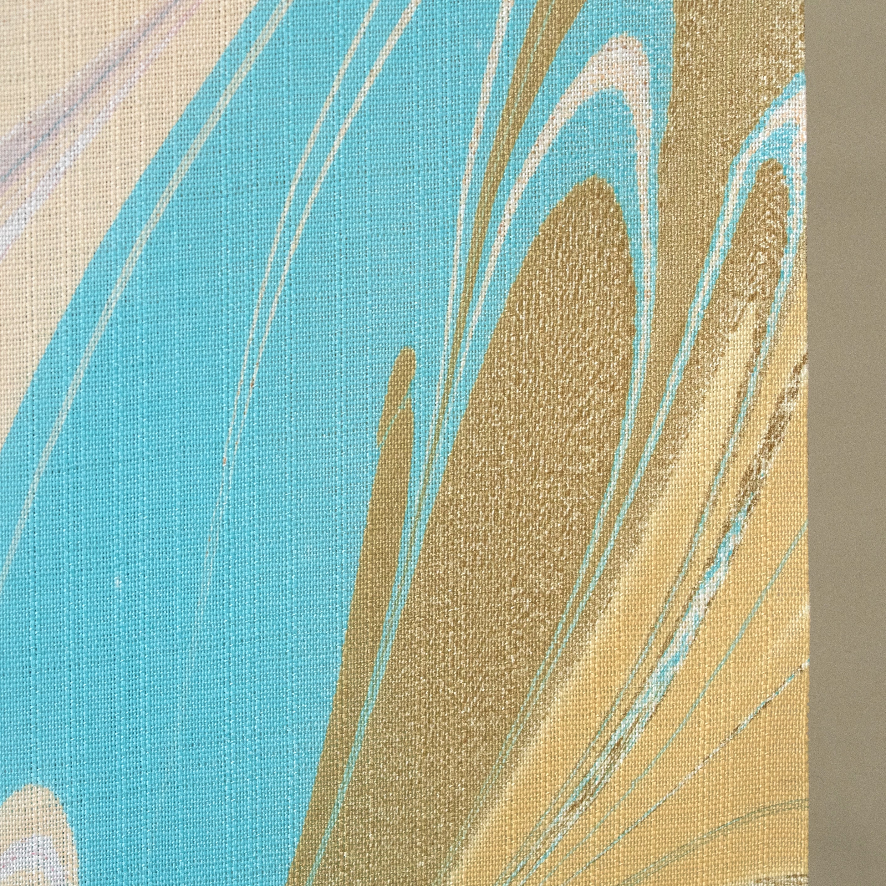 墨流しの技法によって生まれる唯一無二の模様は、まさに特別な瞬間を彩るにふさわしいデザイン。爽やかな水色とゴールドが織りなす上品なコントラストは、見る人の心を明るくし、着る人の魅力を引き立てます。